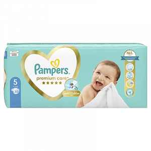 Pleny Premium Care velikost 5 jsou z řady Pampers nejtenčí, nejprodyšnější a nejsušší. Uvnitř plen je speciální dvojitá vrstva odvádějící vlhkost od pokožky dítěte a uzavírá jí uvnitř plenky. Na povrchu jsou proužky s dětským tělovým mlékem, které obsahuje aloe vera, a napomáhá předcházet podráždění pokožky. Moč je v plenkách zavřena ve formě gelových kuliček, tím zabraňuje pronikání vlhkosti zpět k pokožce. Jemnost a prodyšnost plenek poskytuje dítěti komfort a volný pohyb.Plenky jsou vhodné pro děti o váze 11-16 kg. Balení obsahuje 50 ks plen.