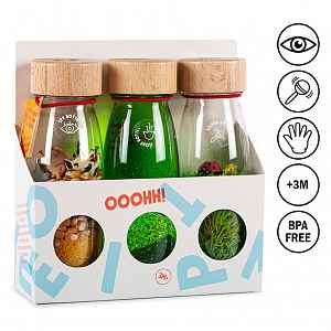 Trojkombinace senzorických lahví: Špionská farma + Plovoucí zelená + Zvukové berušky.