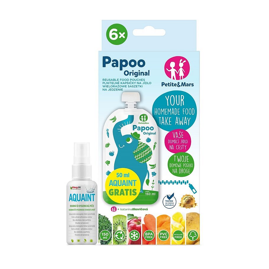Vydejte se na výlet, procházku, na kolo nebo návštěvu s nejpraktičtějším řešením balení svačiny pro děti. Omyvatelné kapsičky jednoduše naplníte, děti se samy nakrmí, neušpiní sebe ani okolí, a vy je pak jednoduše umyjete a použijete znovu při dalších cestách za zážitky. objem 150 ml opakované použití možnost popisu bez BPA, PVC a ftalátů vhodné pro zmrazení v mrazničce Proč si svačinové kapsičky zamilujete? zdravá svačina – domácí strava bez alergenů, přísad a konzervantů je to nejlepší pro vaše děťátko praktické balení – kapsičky nezabírají mnoho místa a kdekoliv jste, máte oblíbenou svačinku po ruce už žádná špína – krmení z kapsičky je praktičtější a děťátko se díky tomu nezašpiní jako při krmení lžičkou z mističky hravý design – o veselý design na kapsičce se postarala slovenská ilustrátorka dětských knížek Katka Ilkovičová šetříte čas i peníze – připravte větší množství jídla do kapsiček, zamrazte pro případ, kdy budete potřebovat něco rychlého a chutného, a vyhnete se tak neuváženým nákupům Rozměry jednoho produktu: 3 cm x 20 cm x 10 cm Inspirujte se našimi recepty na zdravé příkrmy: http://www.babiez.cz/papoo-recepty