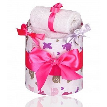 Ručně vyráběný plenkový dort T-tomi je krásným dárkem pro čerstvě narozená miminka nebo maminky v očekávání. Je balen v dárkové krabici s visačkou, na kterou je možné napsat vlastní věnování.