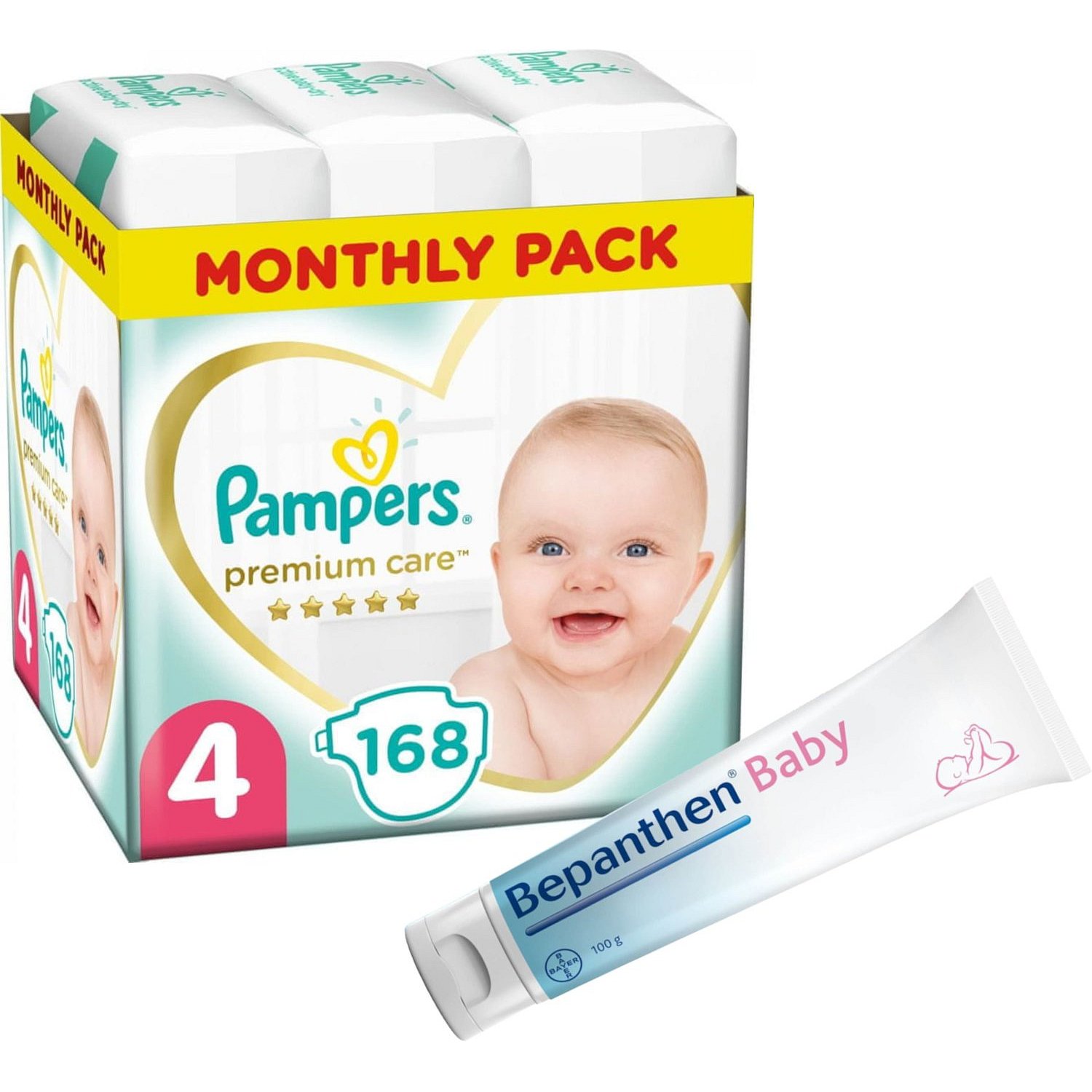 Bepanthen Baby mast 100g a Premium Care S4, 9-14kg 168ks Výhodné balení oblíbených produktů Pampers a Bebanthen Baby.