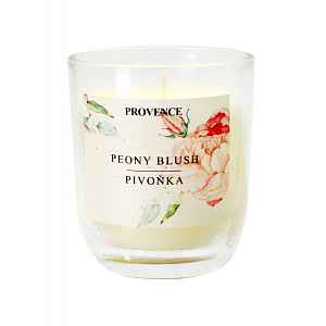 Dekorativní svíčka Provence s vůní pivoňky provoní domov svěží květinovou vůní. Skleněný obal vypadá krásně i jako dekorace. Doba hoření je až 30 hodin.