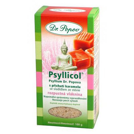 Psyllicol® je rozpustná vláknina Psyllium Dr. Popova obohacená o oblíbenou karamelovou příchuť se sladidlem ze stévie. Psyllium Dr. Popova oceníte při hubnutí – při konzumaci nalačno vyvolává pocit nasycení, čímž se zmenšuje touha po jídle.