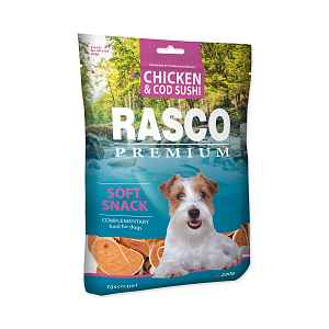 Sushi z tresky a kuřete Rasco Premium je doplňkové krmivo pro psy, které můžete podávat jako pochoutku nebo odměnu.