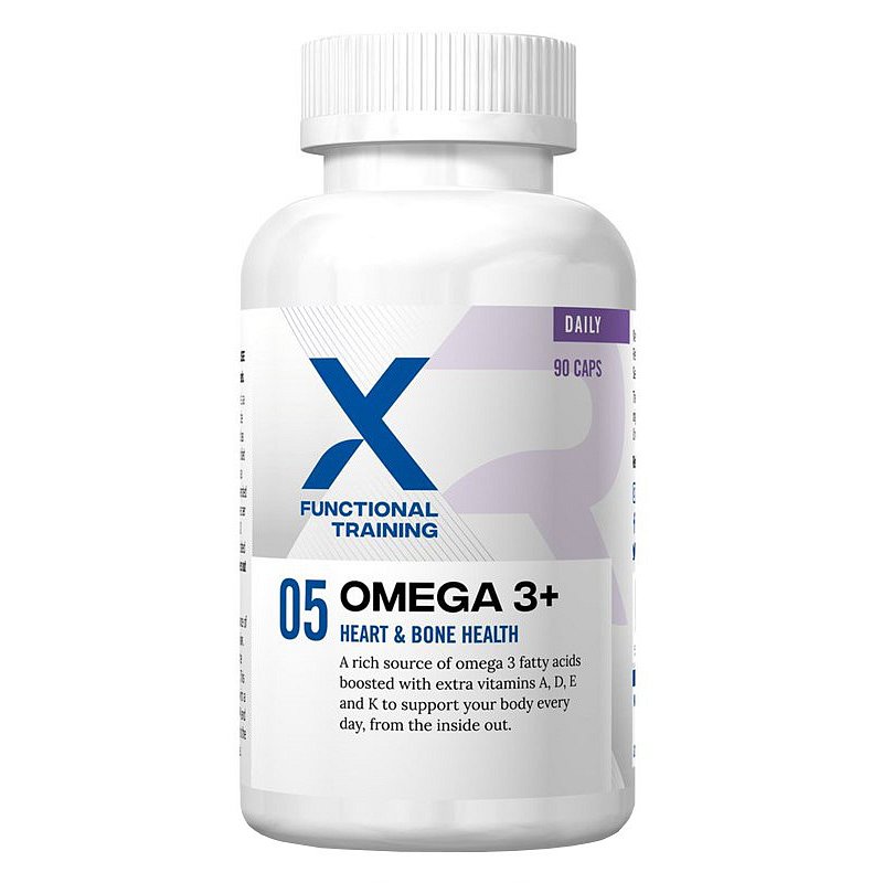 X Functional Training 05 Omega 3+ 90 kapslí Výjimečný zdroj nenasycených mastných kyselin, s vysokým obsahem EPA a DHA, které nejsou snadno dostupné v přirozeném jídelníčku.