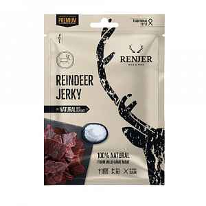 Renjer Reindeer Jerky Sea Salt je prvotřídní maso z divoké lesní zvěře s přírozenou stravou, které má vysoký podíl bílkovin a lahodnou chuť.