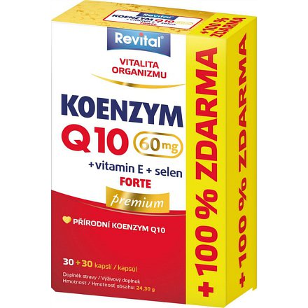 Popis Revital Koenzym Q10 60mg+Se+vit.E cps.30+30 zdarma