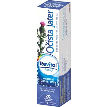 REVITAL® OČISTA JATER Je vhodný k pročištění při detoxikační kúře. Napomáhá udržovat normální hladinu cukru v krvi a je významný pro normální srdeční činnost. Přispívá k přirozené obranyschopnosti – odolnosti organizmu. Ostropestřec mariánský přispívá k: normální trávení a činnost jater normální hladině cukru v krvi normální činnosti srdce pročištění organizmu přirozené obranyschopnosti – odolnosti organizmu Doplněk stravy – rozpustné tablety s obsahem extraktu z ostropestřce mariánského a vlákninou. Se sladidly. Informace pro diabetiky: neobsahuje cukr.