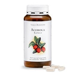 Acerola je druh třešně pocházející ze Střední a Jižní Ameriky. Její plody obsahují vysoké množství vitaminu C s koncentrací dokonce 20-30x vyšší než je v pomerančích. Přírodní vitamín C je buňkami lépe vstřebatelný. Vitamin C: chrání buňky před oxidativním stresem přispívá k normální funkci imunitního systému zvyšuje vstřebávání železa napomáhá normální činnosti nervového systému a přispívá k normální psychické činnosti přispívá ke snížení míry únavy a vyčerpání napomáhá normální tvorbě kolagenu pro normální funkci kostí, chrupavek, dásní, kůže, zubů a krevních cév přispívá k normálnímu energetickému metabolismu Dávkování: Užívejte 1 kapsli denně a zapijte sklenicí vody nebo jinou vhodnou tekutinou. Složení: 400 mg extraktu z Aceroly se 70 mg přírodního vitaminu C v jedné tobolce. Extrakt z Aceroly (80,6 %), plnidlo maltodextrin, želatina, protispékavá látka stearát hořečnatý. Upozornění: Nepřekračujte doporučené dávkování. Není určeno jako náhrada pestré stravy.
