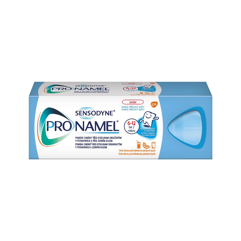 Sensodyne Pronamel Junior je zubní pasta lékaři speciálně vyvinutá tak, aby chránila dětské zuby před naleptáváním kyselinami a zároveň před zubním kazem. Pasta také pomáhá zpevňovat zubní sklovinu a má příjemnou mátovou chuť. Přípravek je určen především pro děti nad 6 let. Balení obsahuje 50 ml. Není určeno pro děti do 6 let.