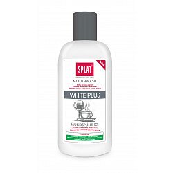 SPLAT Professional WHITE PLUS ústní voda obsahuje ionty zinku, které společně s esenciálním olejem z tymiánu chrání dásně. Enzym papain bělí zubní sklovinu a účinně zbavuje zubního plaku. Inovativní složka LUCTATOL ochrání vaše zuby před zubním plakem a zubním kazem. Po použití ústní vody budou vaše zuby chráněné, krásně a bezpečně vybělené a váš dech příjemně svěží. Výsledek: Zabraňuje tvorbě zubního plaku Ochrana zubů před vznikem zubního kazu Svěží dech Složení: LUCTATOL® (mléčné enzymy laktoferrin, laktoperoxidáza, glukózooxidáza), extrakt z lékořice, esenciální olej z tyminánu, extrakt ze stévie, enzym papain, zinek glukonát, mentol. BEZ FLUORIDU. Použití: Ústní vodu používejte po vyčištění zubů a po jídle. Odměřte půl víčka a proplachujte v ústech 1 minutu, vyplivněte a nevyplachujte vodou. Nepolykejte.