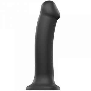 Prémiové strap-on dildo z dvojitého silikonu a širokým průměrem díky pružnému jádru ohnete do různých úhlů.
