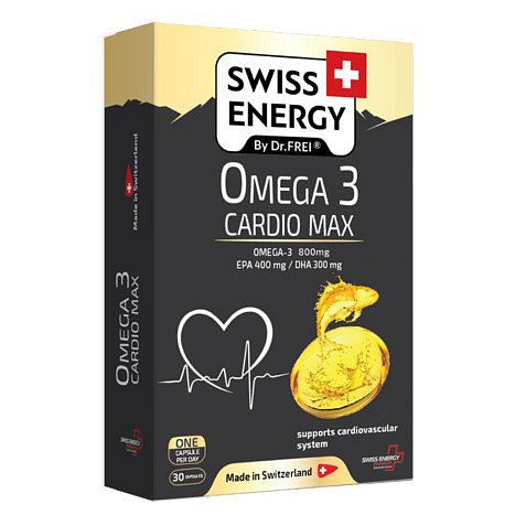 SWISS ENERGY OMEGA-3 Cardio Max Swiss Energy Omega-3 Cardio Max obsahuje vysoké množství Omega-3 mastných kyselin, které účinně podporují kardiovaskulární systém.