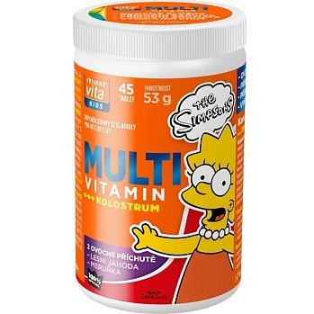 MaxiVita Kids Multivitamin + kolostrum 2 ovocné příchutě – lesní jahoda, meruňka. Pro děti od 3 let.