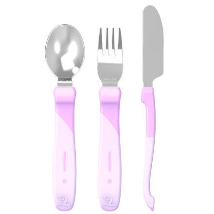 TWISTSHAKE učicí příbor nerezový - nůž pro bezpečné krájení, lžíce navržená pro velikost sousta batolete a vidlička s jemnými hroty. Pro děti od 12 měsícu.