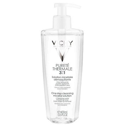 Hned trojí účinek nabízí micelární voda Pureté Thermale od Vichy. Přípravek zvládne v jediném kroku vyčistit pleť, odstranit z pokožky i očí make-up a zklidnit ji. Po použití je pleť hebká, vláčná, čistá a důkladně hydratovaná. Součástí složení je i přírodní termální voda z Vichy napomáhající ke zrychlené regeneraci a posílení pokožky. Výsledek: čištění pleti odstranění make-upu z obličeje i očí zklidnění pokožky Složení: Micelární voda je svým šetrným složením vhodná ke každodennímu čištění všech typů pleti, a to včetně citlivé a jemné pokožky. Je obohacena o termální vodu z Vichy, která pleť vyživuje a má prokazatelné regenerační, zklidňující a posilující účinky. Pokožka je hebká na dotek a dokonale čistá. Použití: Nanášejte každý večer v dostatečném množství za pomoci vatového tampónu. Aplikujte na pleť obličeje a krku, jemnými pohyby pokožku čistěte a odstraňujte make-up. Po nanesení již není nutné micelární vodu oplachovat.