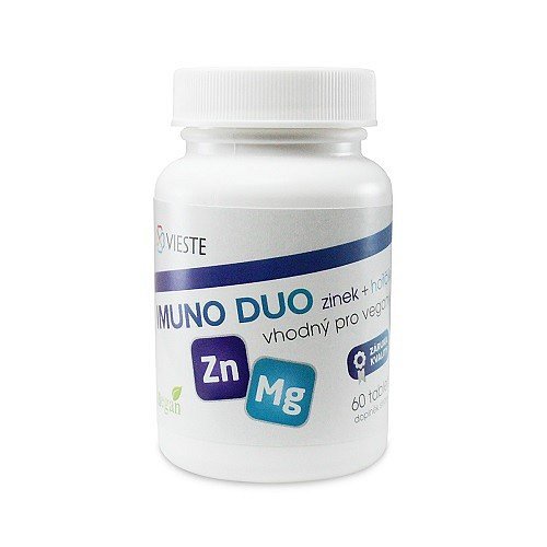 Vieste Imuno Duo zinek hořčík je doplněk stravy ve formě tablet. Zinek přispívá k normální funkci imunitního systému. Hořčík přispívá ke snížení míry únavy a vyčerpání. Balení obsahuje 60 tablet.