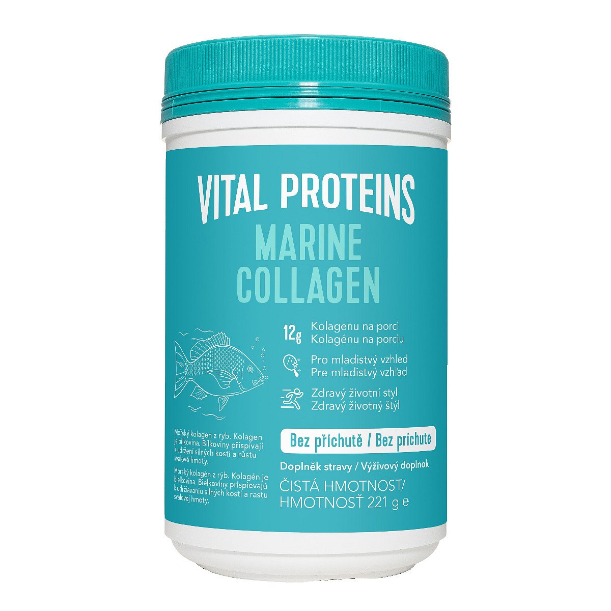 Vital Proteins Marine Collagen obsahuje vysoce kvalitní mořský kolagen z volně žijících ryb. Chuťově neutrální prášek k přimíchání do nápoje.
