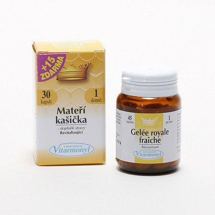 Vitarmonyl Mateří kašička je doplněk stravy vhodný pro posílení organismu, podporuje chuť k jídlu a dodává energii obzvláště v období rekonvalescence. Mateří kašička je látka produkovaná včelami mezi 5. až 14. dnem jejich života. T