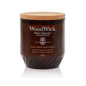 Wood Wick ReNew Vonná svíčka Incense & Myrrh s vůní myrhy z Namibie, sladkého dřeva a a pomeranče. Efekt práskajícího ohně. Ideální k relaxaci.