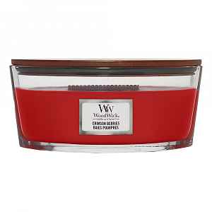 Wood Wick Vonná svíčka Crimson Berries provoní váš domov vůní zimních bobulí, hřejivého koření a esencí z jmelí. V kombinaci s jemným zvukem praskajícího knotu vytváří útulnou vánoční atmosféru.