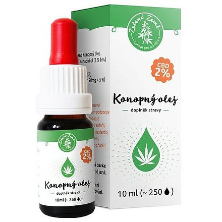 Konopný olej obohacený o CBD (2% hm.) - 10 ml. Unikátní doplněk stravy, který podporuje obranyschopnost a blahodárně působí na přirozené procesy těla. Jedinečná výroba, jedinečný produkt - spojení alkoholové a CO2 extrakce.