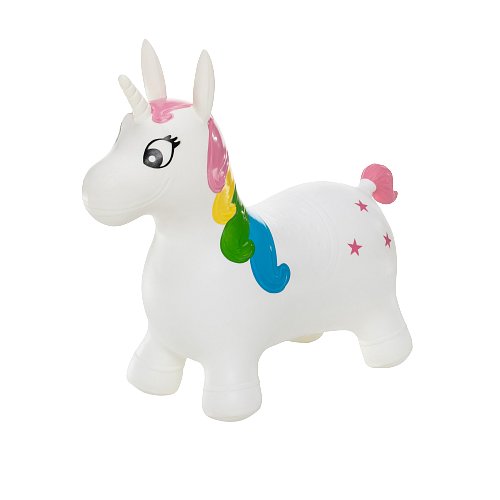 Hopsadlo Skippy, Unicorn/White Skákání pro radost i pro zdraví. Nafukovací hopsadlo Skippy ve tvaru oblíbeného gumového zvířátka či dopravního prostředku je dokonalou hračkou pro každé neposedné batole.