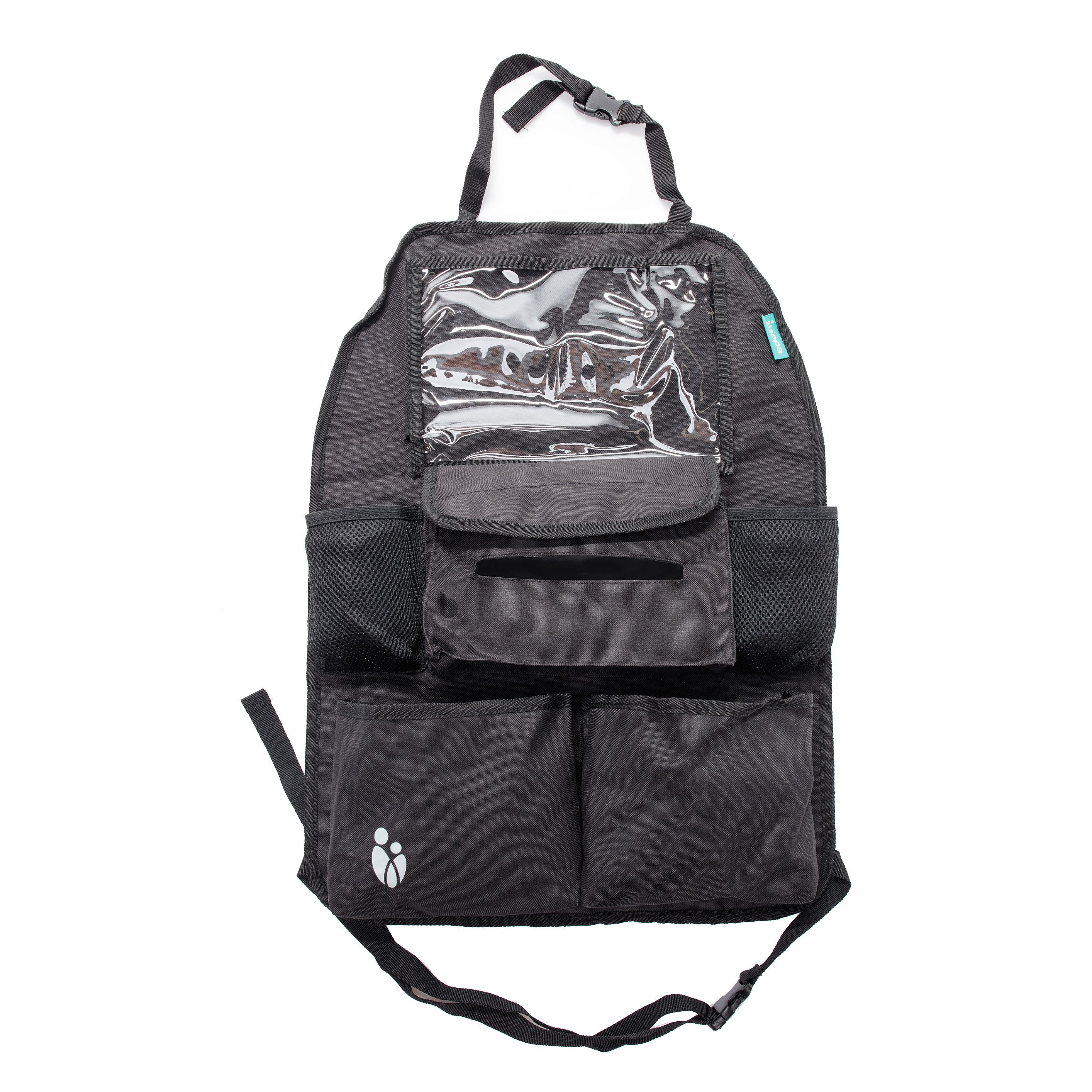 Organizér na sedadlo + kapsa na tablet a kapesníčky Chytrý a efektivní organizér na sedadlo auta zpříjemní cestu nejen vám, ale díky kapse na tablet také vašim dětem, které se mohou zabavit sledováním pohádek. Organizér udrží na svém místě také dvě lahve na nápoje, takže se není třeba obávat vylití.